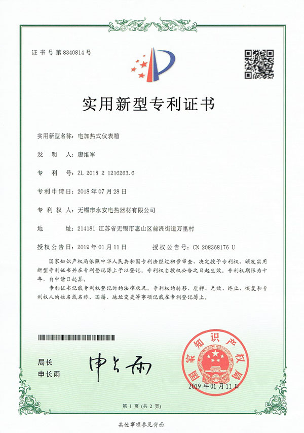 专利实用-电加热式仪表箱